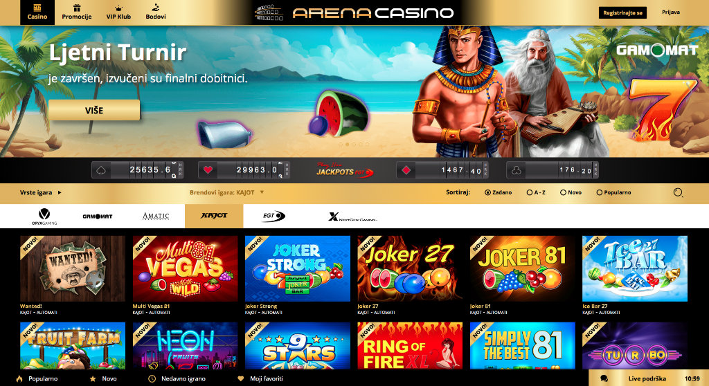 Tato nová vlajka na Kajot mapě nás dělá nesmírně šťastnými. Po několika měsíčním úsilí chorvatská společnost Super Igra nabízí hry KAJOTu ve svém internetovém kasinu Arena Casino.